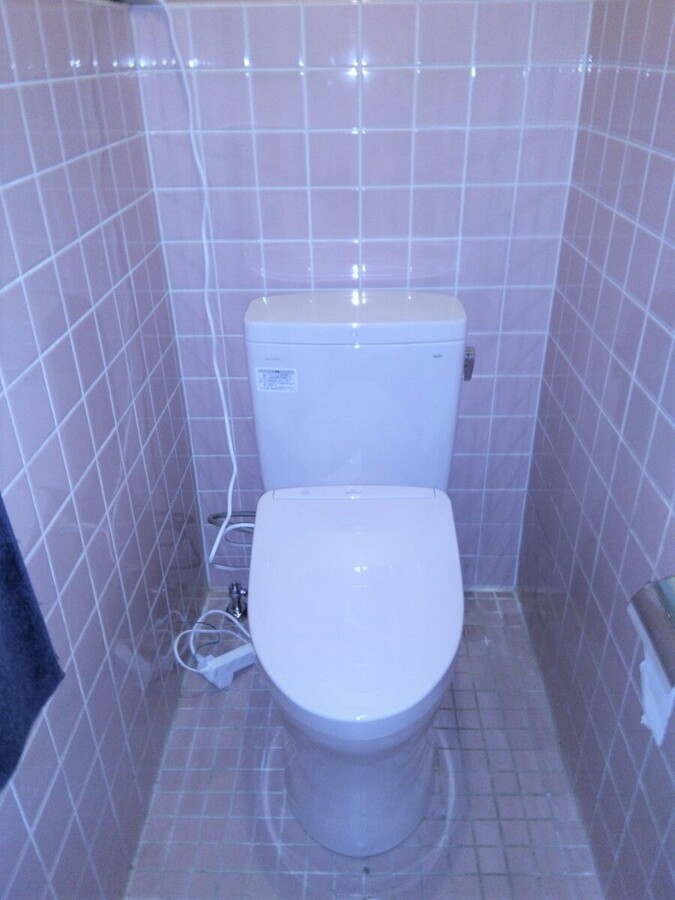 施工前 節水タイプに交換したいとの事でご依頼頂きました。 施工後 既設のトイレが約10L、節水タイプだと約5Lと半分ぐらいの水で流すことができます。色も受注生産になってしまうので、納期が2週間ぐらいかかってしまいますがこだわりのピンクで満足して頂けました。