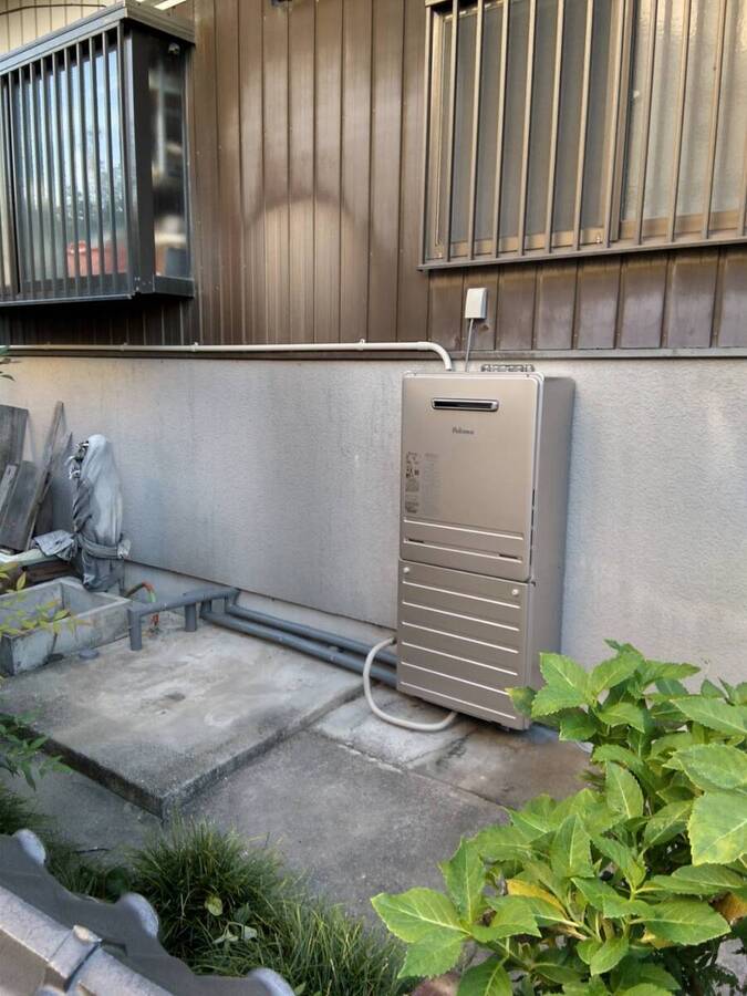 施工前施工前準備 水道、お湯配管の状況とコンセントの位置を確認し、 どこに給湯器を設置するか決める。 ガス配管は以前使用していた為、その管を再利用することにする。 本体を解体し、室外機とともに撤去した。 施工後給湯器への取替 給湯器設置後、お湯、水道の配管を壁にそって一部引き直す。 キッチンとお風呂のリモコン配線もやり直し、化粧カバーを取付け 見た目をよくした。 追い焚き管は以前の物が使えない為、新品に付け替えガス管をつなぎ配管カバーをつけて完了した。