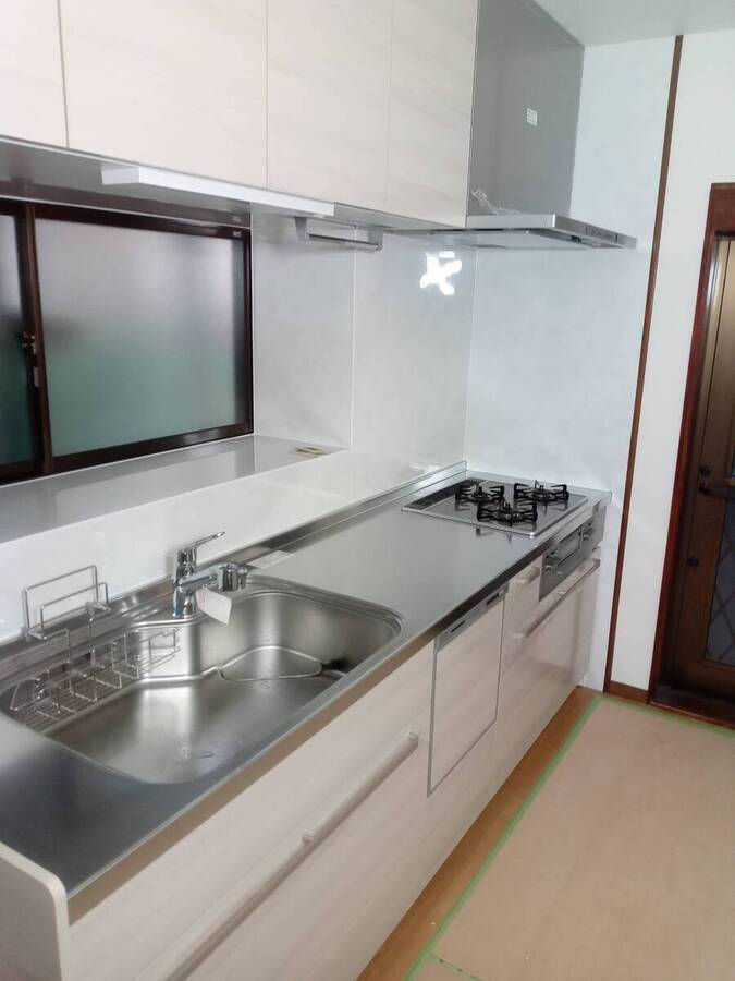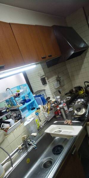 施工前キッチンリフォーム キッチンの排水管は油物が多く詰まりやすいです。 元々キッチンは小物が多い場所ですので収納に工夫がいりますね。 施工後クリナップ ステディア 古いタイルをとってキッチンパネルに張替えました。 壁のクロスや床も新しくしました。 キッチンのこだわりは、プルダウン吊戸棚で小物も収納しやすくしました。 洗エールレンジフードでお掃除もラクラクです。